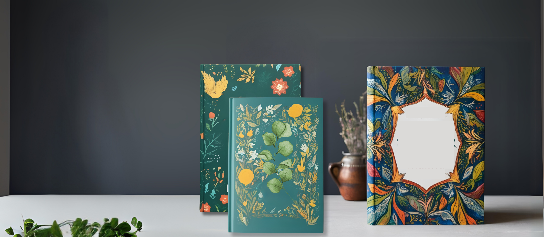 Hardcover mit Stoffbezug: Von Leinen bis Buckram bieten Stoffe eine warme Textur und ein klassisches Aussehen, perfekt für Bücher, die Tradition und Handwerkskunst hervorrufen.